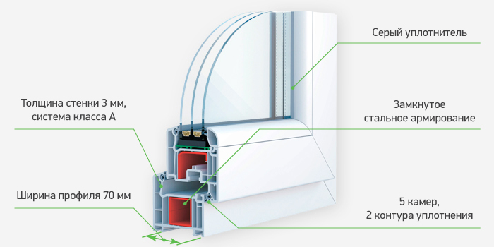 VEKA SOFTLINE – энергоэффективная пятикамерная профильная система с классической геометрией створок. Ее увеличенная монтажная глубина (70 мм) гарантирует повышенную тепло- и шумоизоляцию пластикового окна, прочность - дополнительные камеры выполняют функцию внутренних ребер жесткости. Устойчивый к механическому воздействию и агрессии окружающей среды, высококачественный пластик пятикамерного профиля не выцветает под лучами ультрафиолета, поверхность его ровная и гладкая. Конструкция с двухкамерным стеклопакетом располагает надежной 2-уровневой системой прочных и эластичных уплотнителей. Комплектующие поставляются в привлекательном сером цвете, придающим профилю облик класса люкс. Пятикамерная профильная конструкция соответствует классу А по ГОСТ 30673-99 и европейскому стандарту RAL (толщина внешней стенки – 3 мм!).